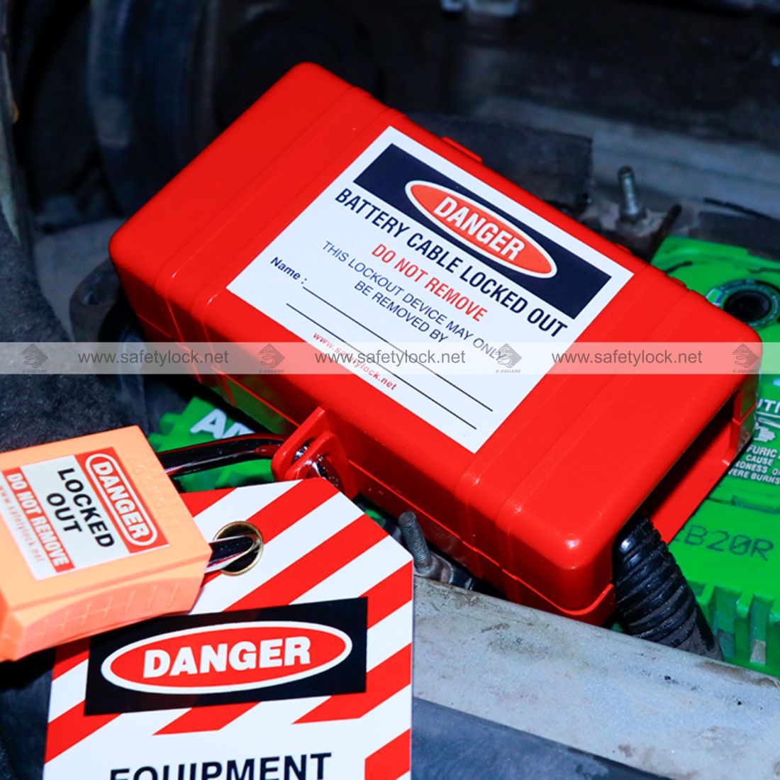 - Begin by opening the lockout device and position the plug inside.