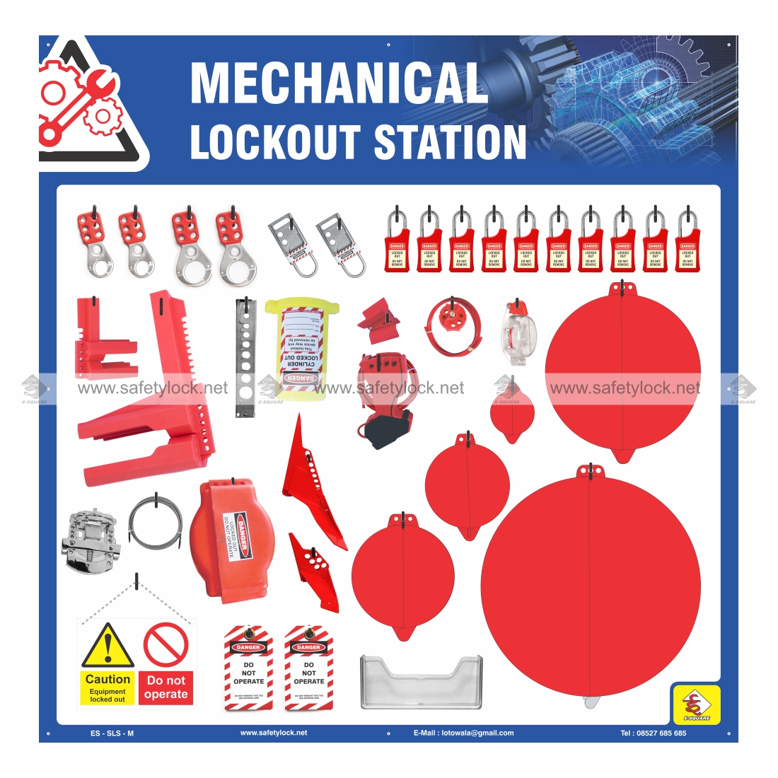 - Customized lockout shadow boards with machine-specific procedures can be created for larger machines.
